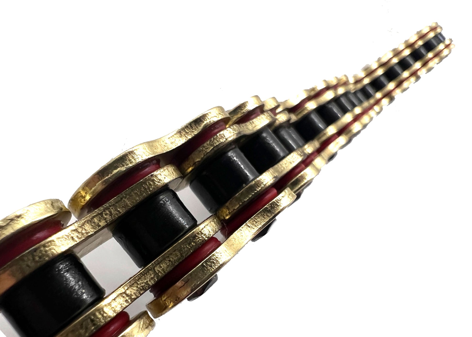 In addition to the chain size being upgraded, we have also designed an exclusive dished rear sprocket. The primary chain conversions with flat sprockets left very little room for the frame adjuster and rear lower motor mount frame tab. This will ultimately end up with damage and scarring to your frame if your tension goes slightly out of spec, so why not use the room provided and space it internally.
