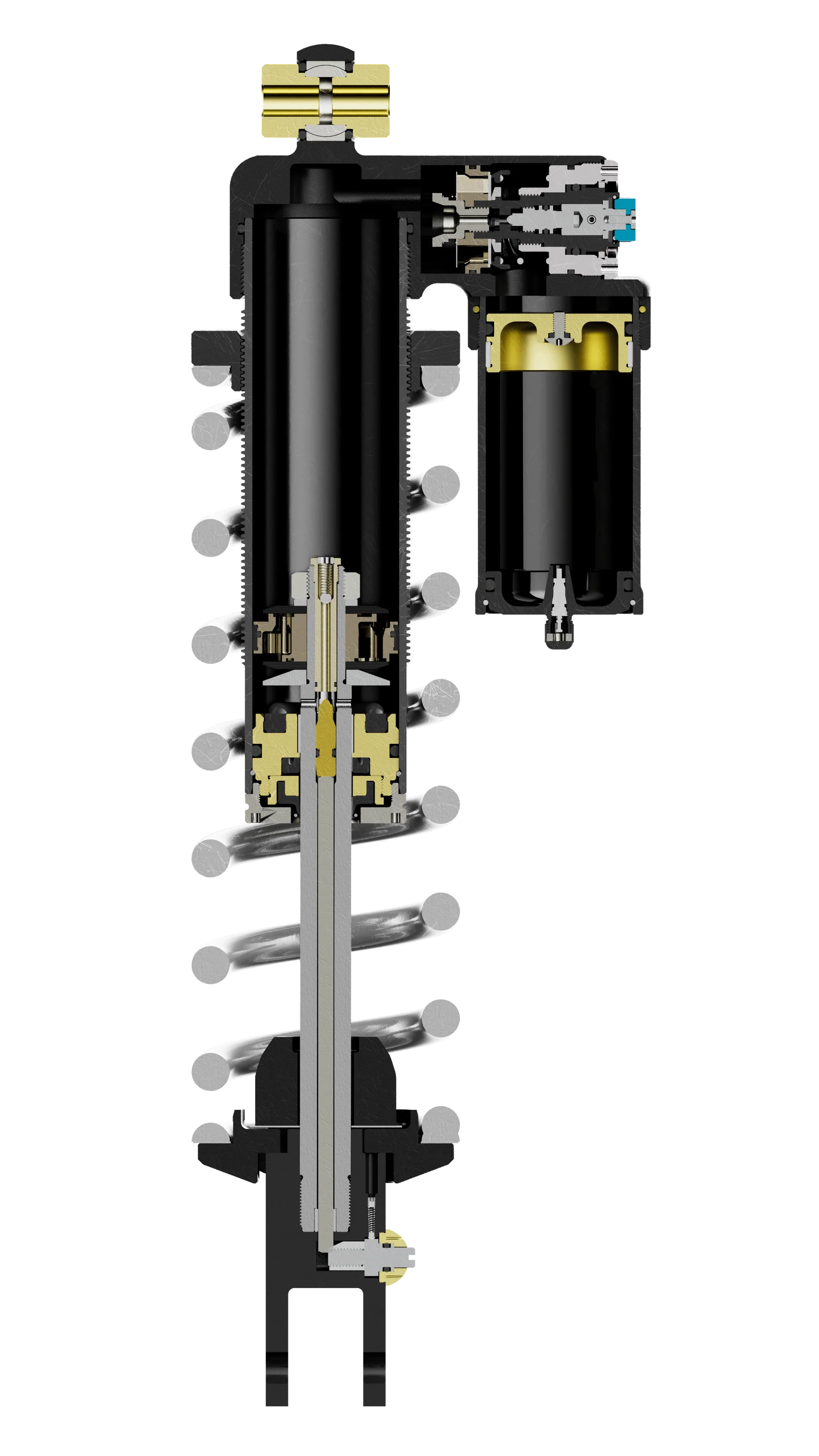 Type 3 hard anodized body cap, body, reservoir, end cap, spring hardware, and clevis.