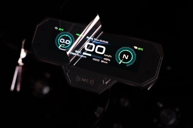 - TFT display with NFC card or password unlock — ride keyless or protect it with your personal PIN